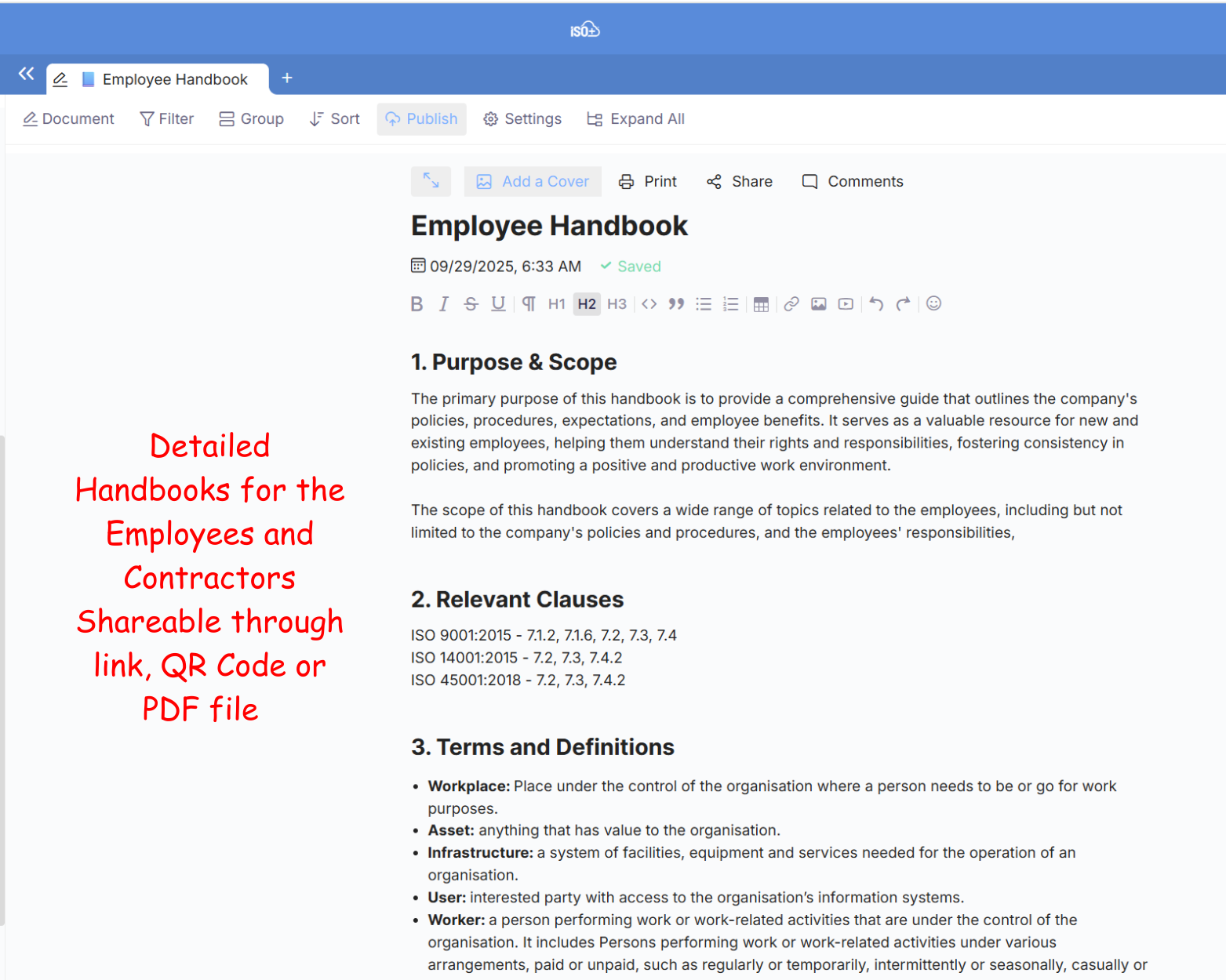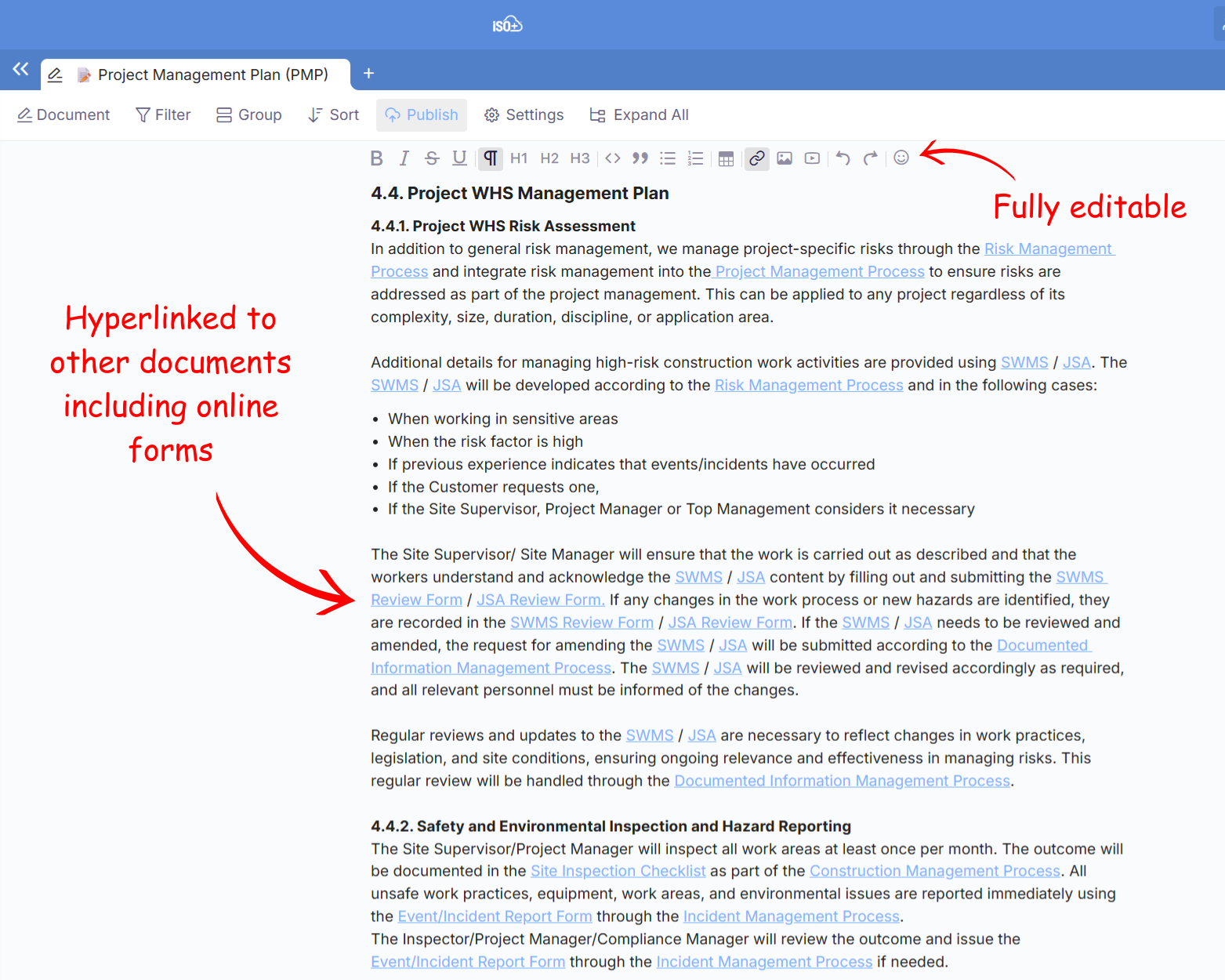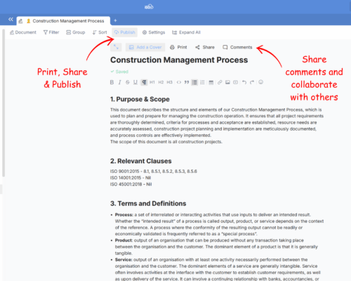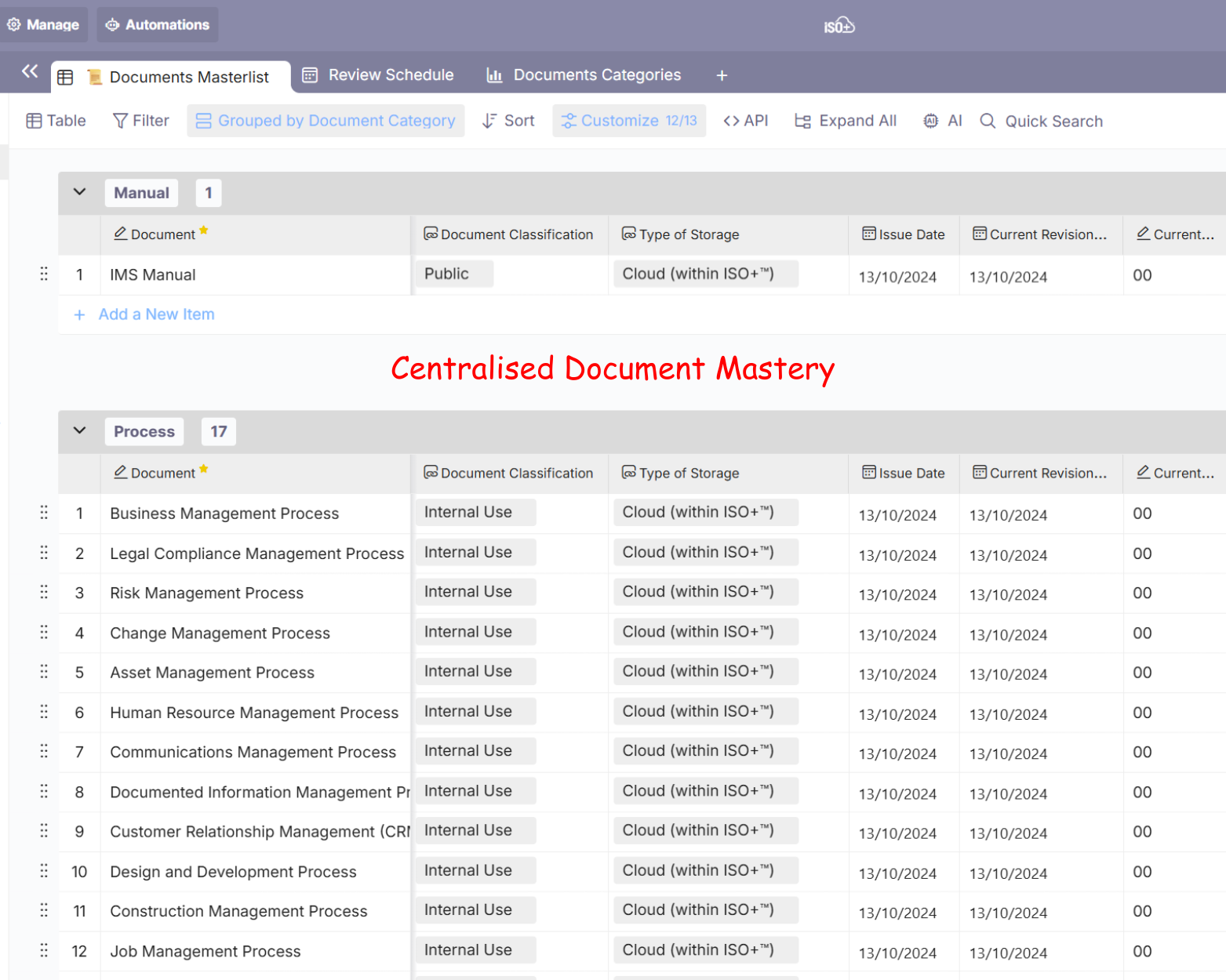 ISO+™ equips your teams with smart tools to simplify compliance and boost productivity. It centralises processes, saves time, and keeps projects on track. Features include, but are not limited to: