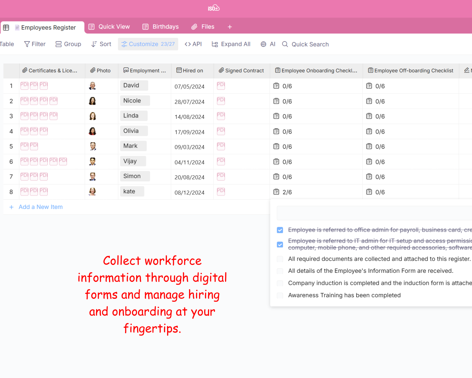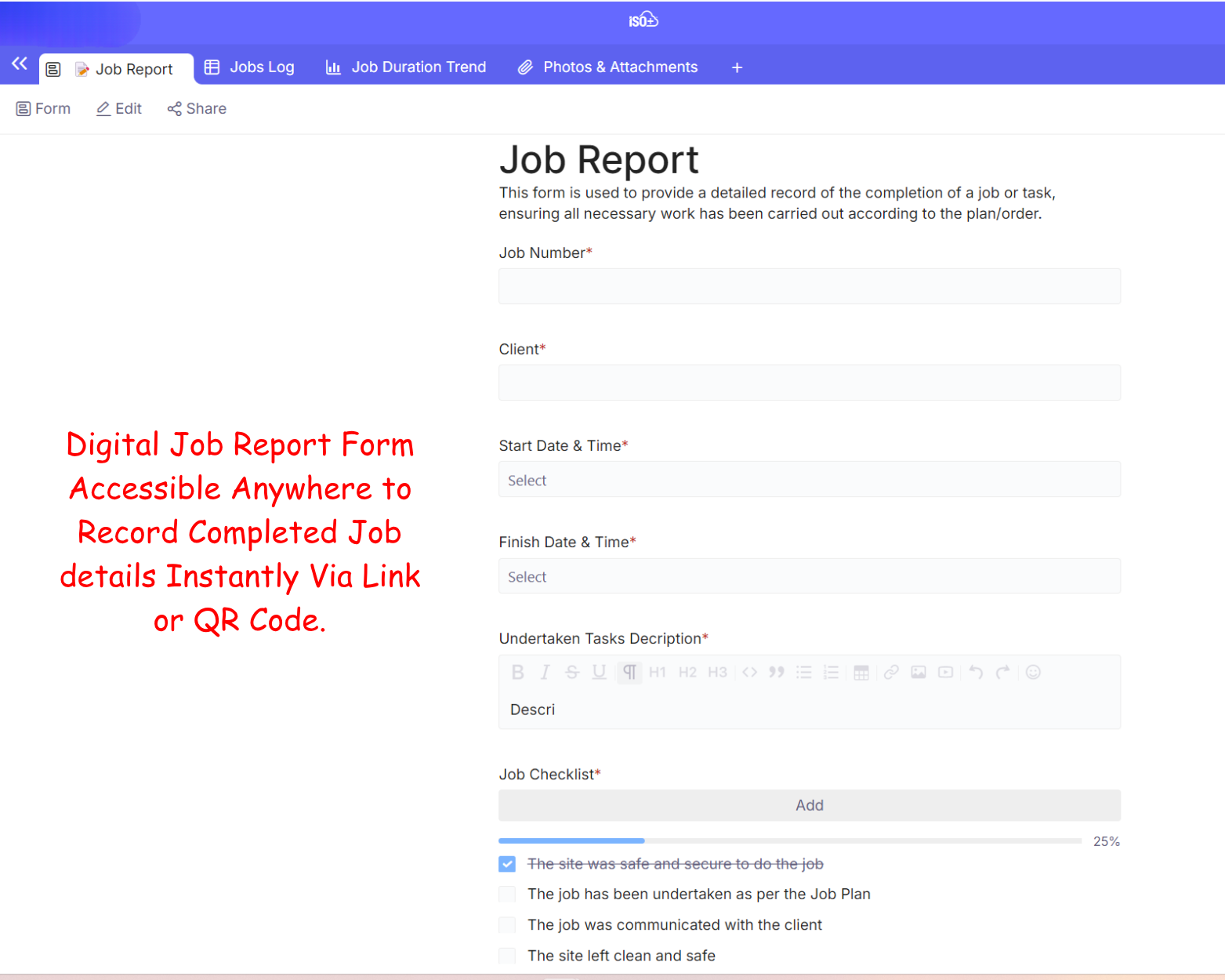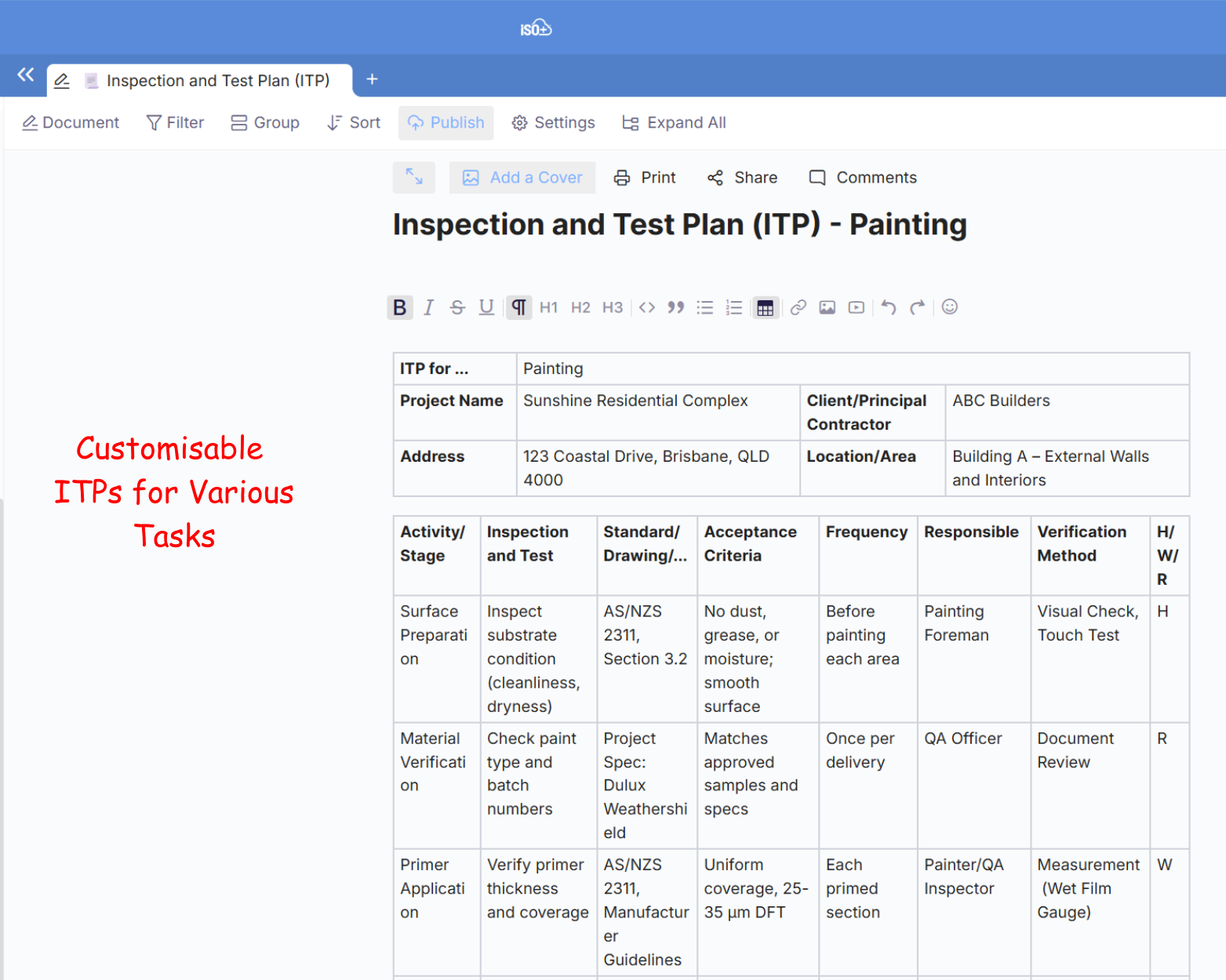ISO+™ equips your teams with smart tools to simplify compliance and boost productivity. It centralises processes, saves time, and keeps projects on track. Features include, but are not limited to: