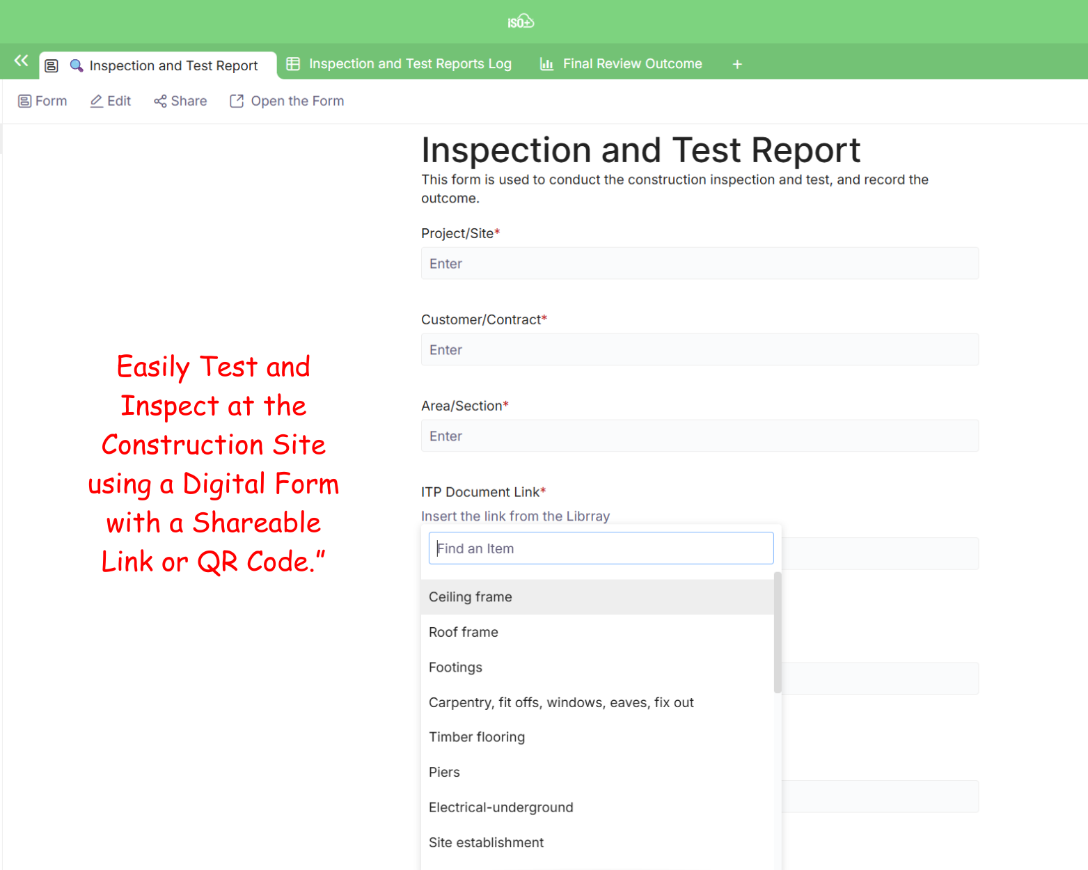 Take control of construction quality — inspect, report, and resolve in one platform. ISO+™ makes it easy to verify goods, test on-site, track issues, and close out corrective actions efficiently.