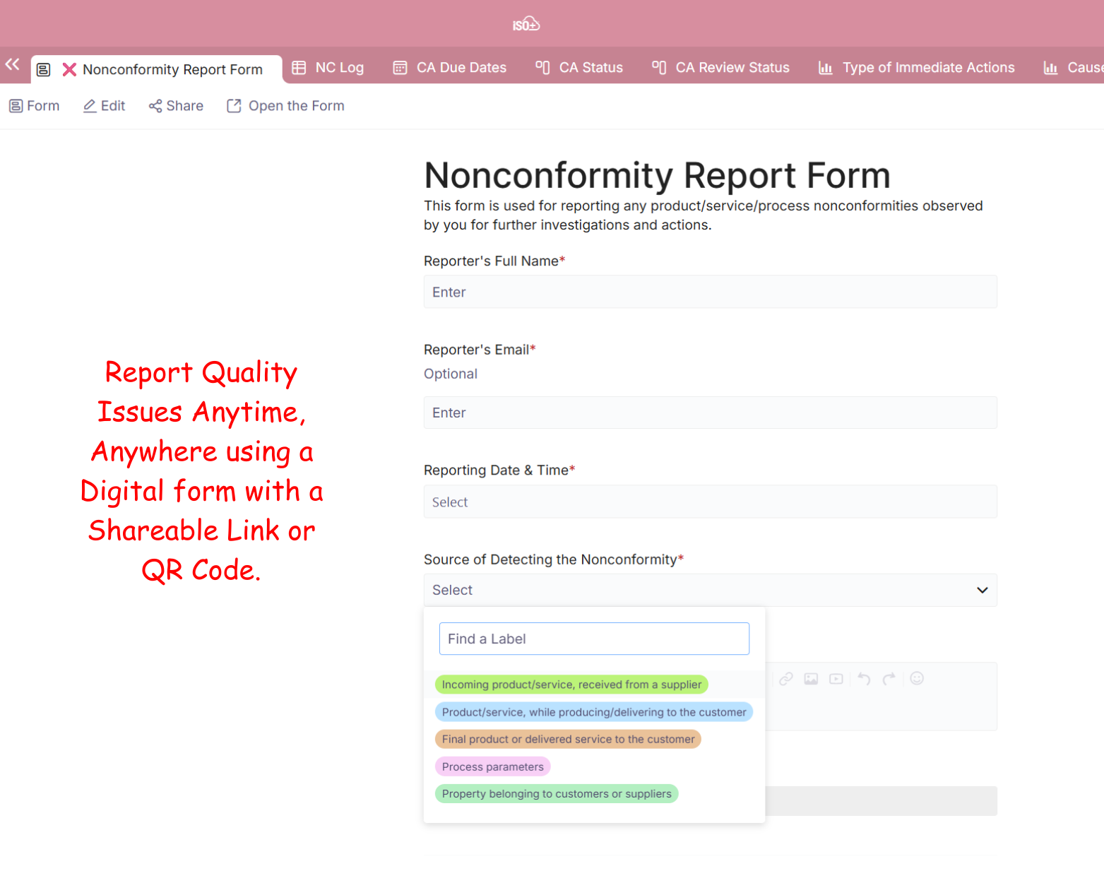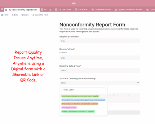 • Quick Issue Reporting – Log nonconformities anytime, anywhere.