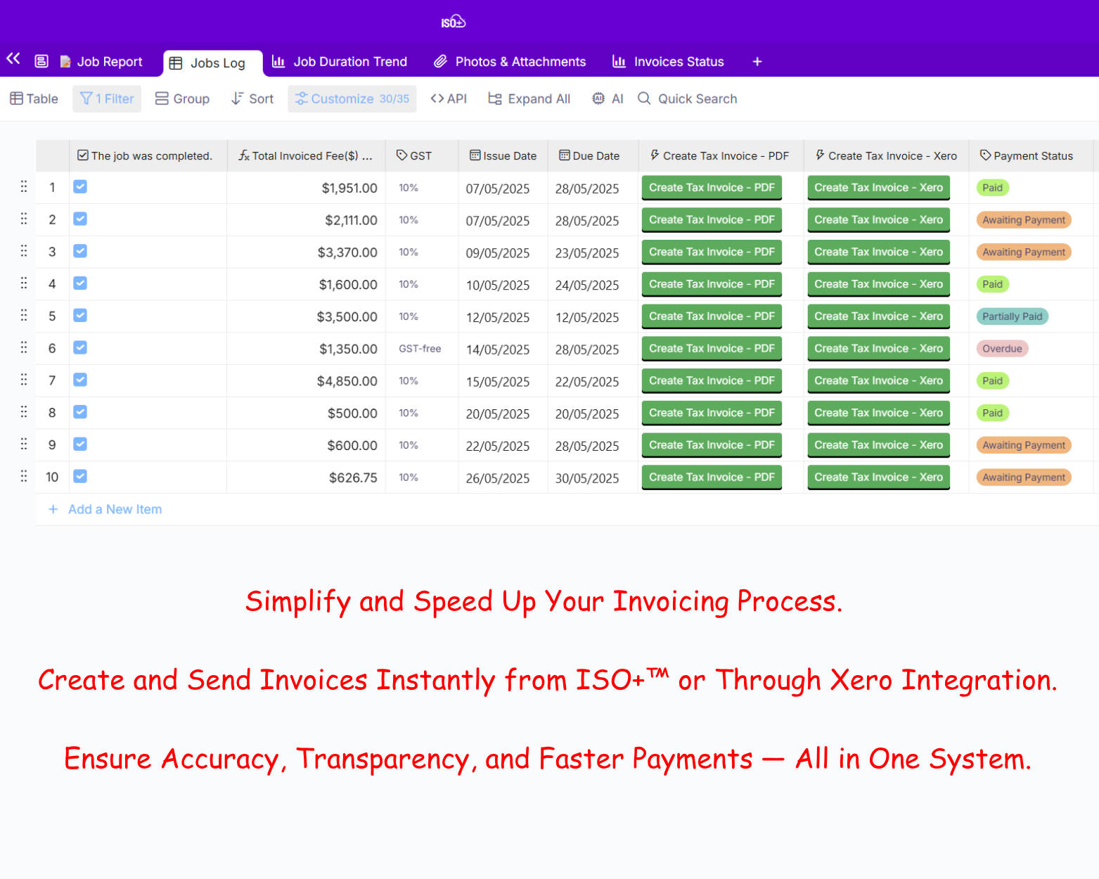• Easy Invoicing – Bill instantly via ISO+™ or Xero